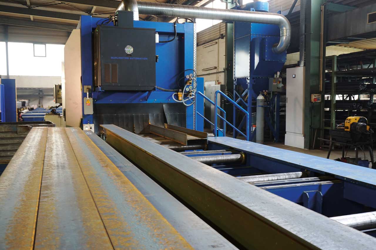 Python X vereint fortschrittliche und computergestützte CNC-Technik mit hochauflösendem Plasma-Schneiden: vollautomatisch und hoch präzise. Er kann Stahlprofile bis zu einer Breite von 1.000 Millimetern und einer Länge von 18.000 Millimetern anarbeiten.